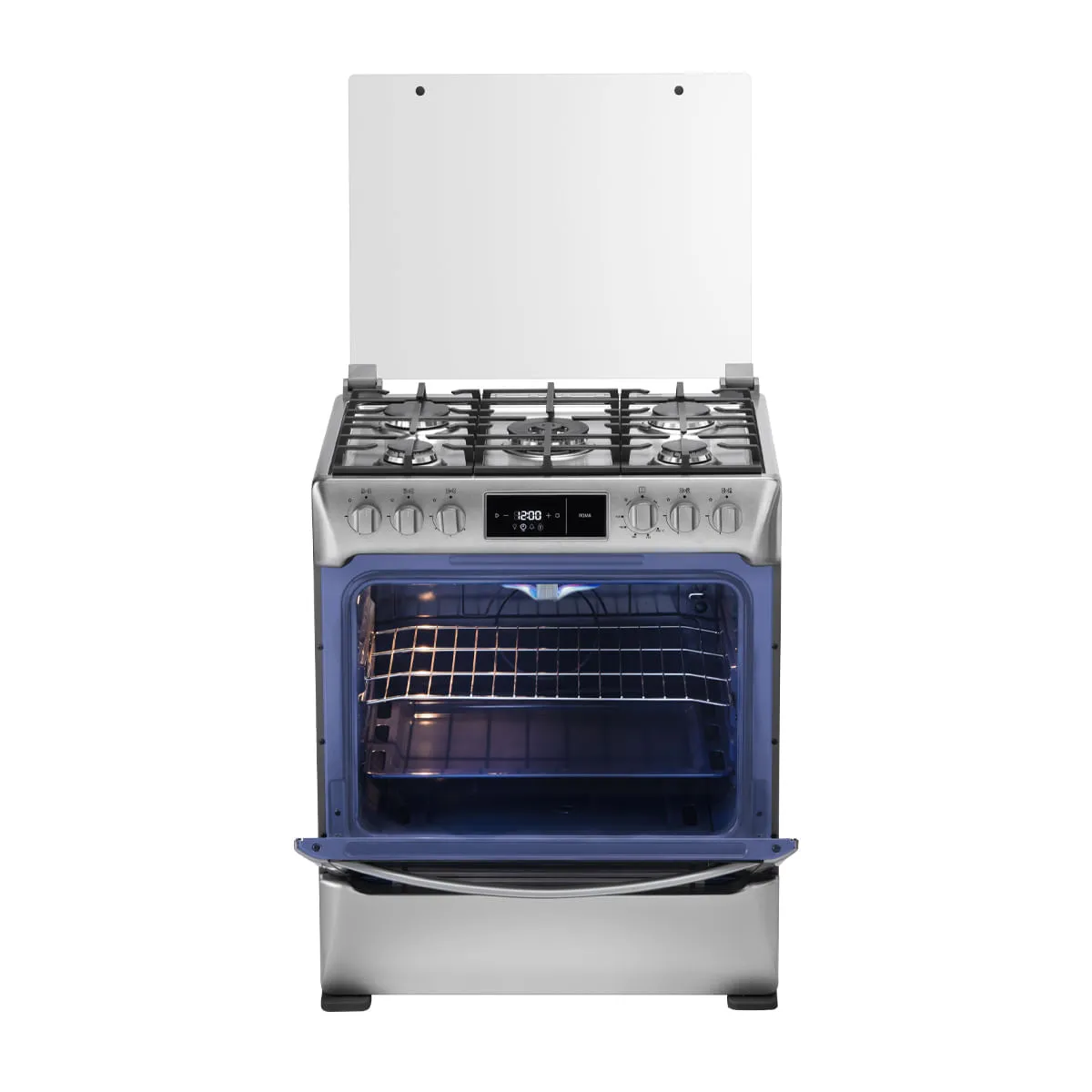 Este modelo potencia la experiencia culinaria con su amplio horno, que incorpora un asador giratorio motorizado, perfecto para lograr pollos y carnes rostizadas con un dorado uniforme y jugoso. Está equipada con encendido electrónico directo en quemadores y horno para un uso seguro y sin fósforos, luz interior para supervisar los platillos sin perder calor, y un cronómetro mecánico que ayuda a controlar los tiempos de cocción con precisión, todo protegido por una tapa de vidrio templado de cierre suave.