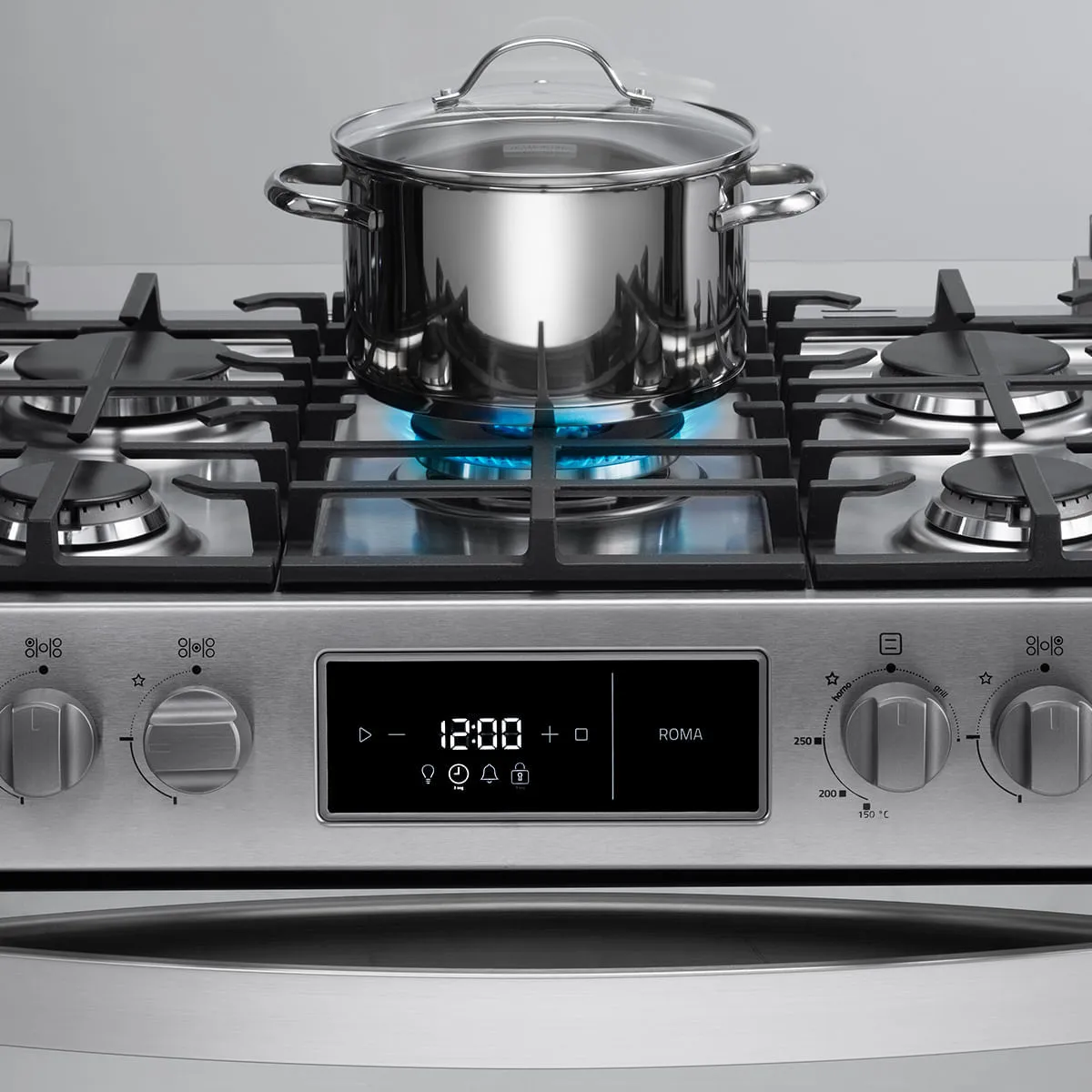 La Cocina a Gas Indurama Roma de 5 Hornillas Inox es un electrodoméstico robusto y funcional de 30 pulgadas, diseñado para brindar potencia y durabilidad en la cocina diaria. Su elegante tablero de acero inoxidable facilita la limpieza y resiste el uso rudo, mientras que sus pesadas parrillas de hierro fundido ofrecen una estabilidad superior para ollas de cualquier tamaño. Cuenta con una configuración versátil de 5 quemadores sellados, destacando su potente quemador Triple Corona que genera un calor intenso ideal para saltados, sellado de carnes y cocción rápida.