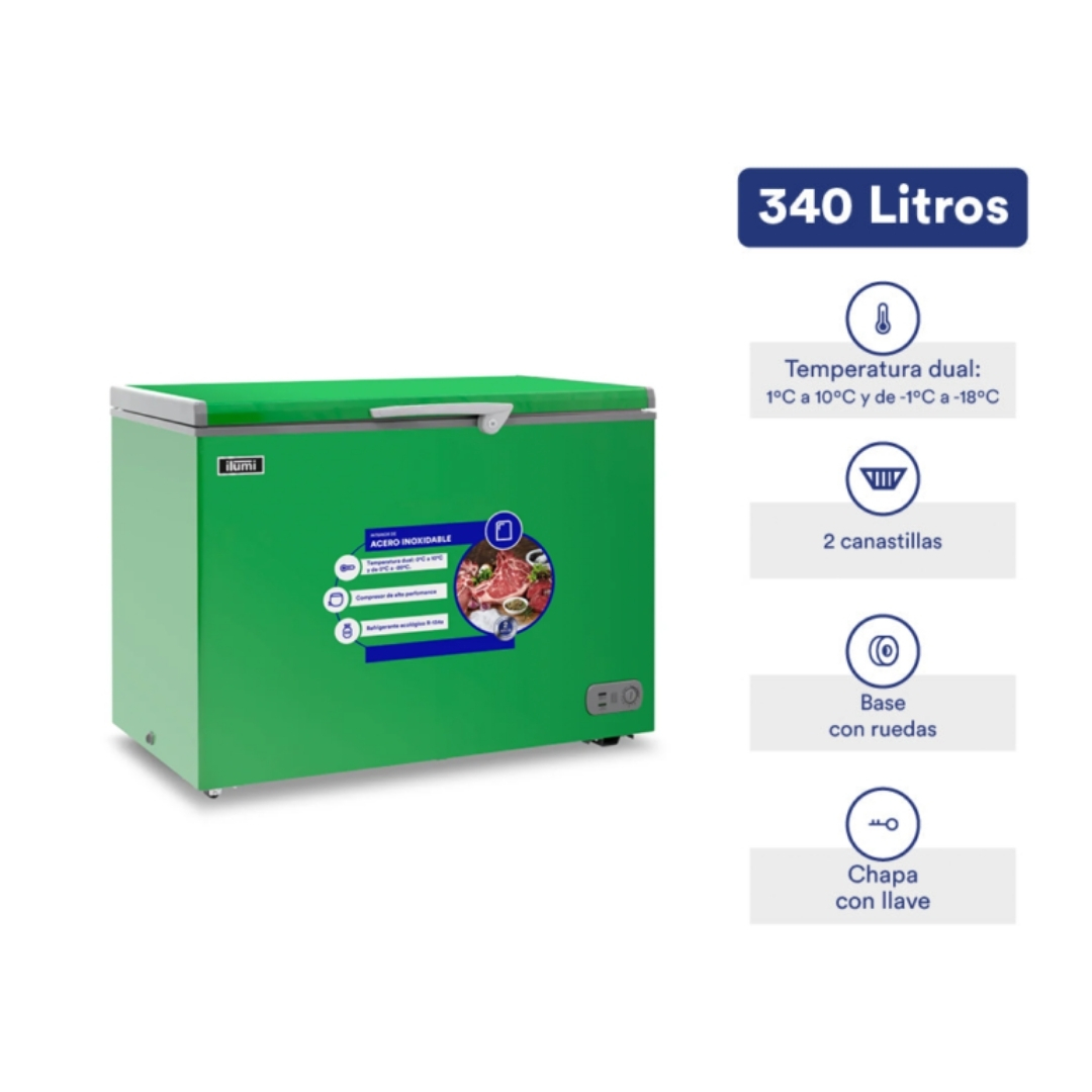 Congeladora Ilumi 340 Litros Verde TFI-3400GR – Alta Capacidad y Eficiencia Energética