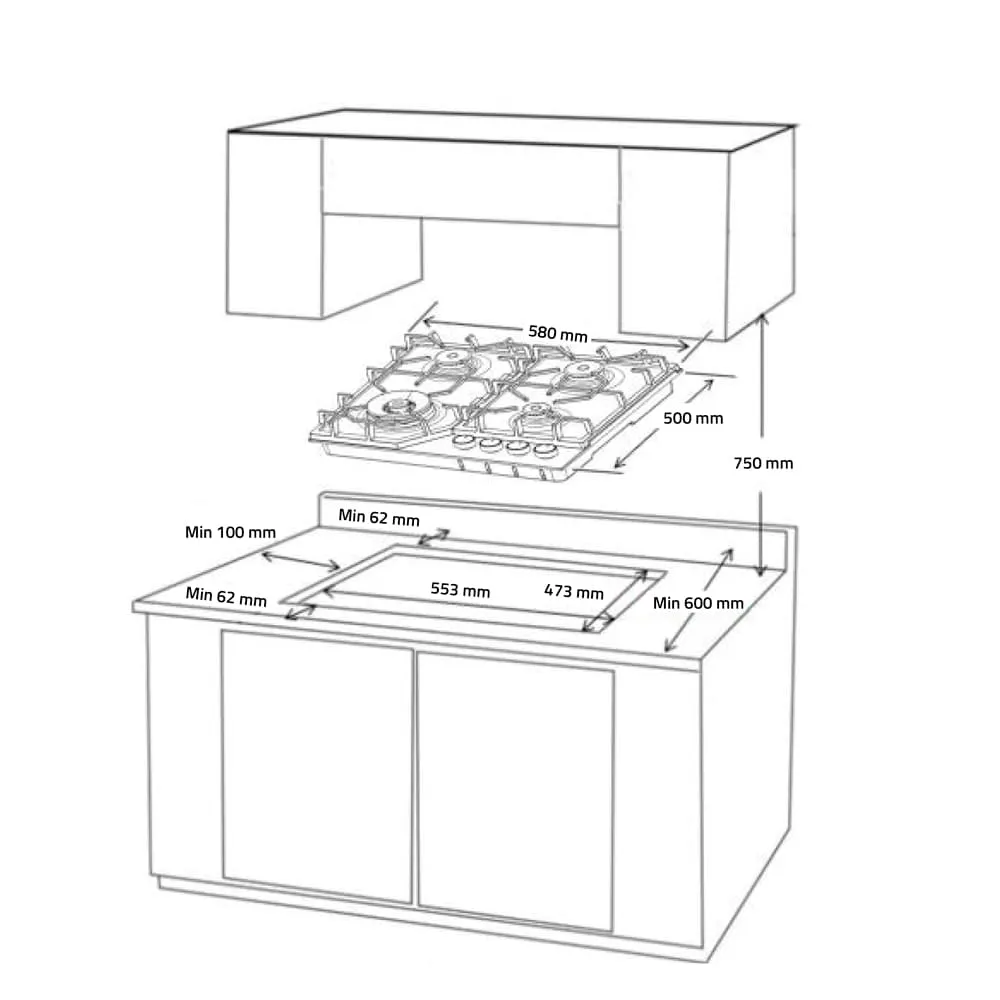 Encimera Indurama EGASI-604CGNE Negro 4 Quemadores