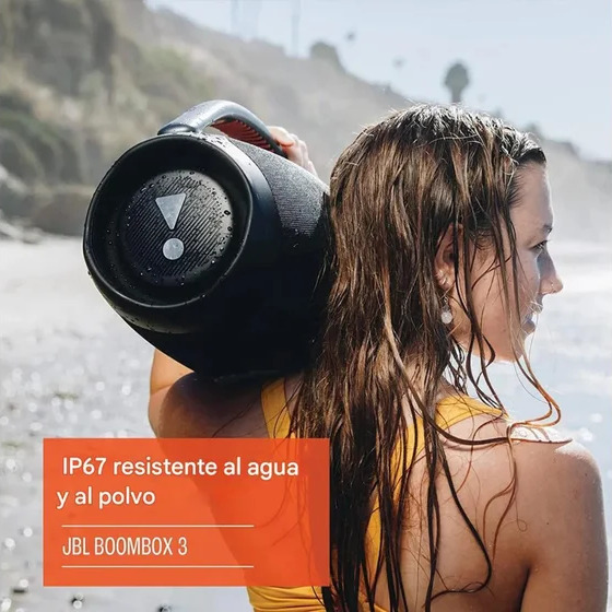 El JBL Boombox 3 es un potente parlante portátil diseñado para ofrecer JBL Original Pro Sound con graves profundos y gran claridad, ideal para fiestas y uso al aire libre. Cuenta con conectividad Bluetooth 5.3, batería de hasta 24 horas de reproducción, y un diseño resistente al agua y polvo con certificación IP67. Su sistema de altavoces de 3 vías con subwoofer integrado proporciona un sonido potente y equilibrado, mientras que su asa metálica resistente facilita transportarlo a cualquier lugar.