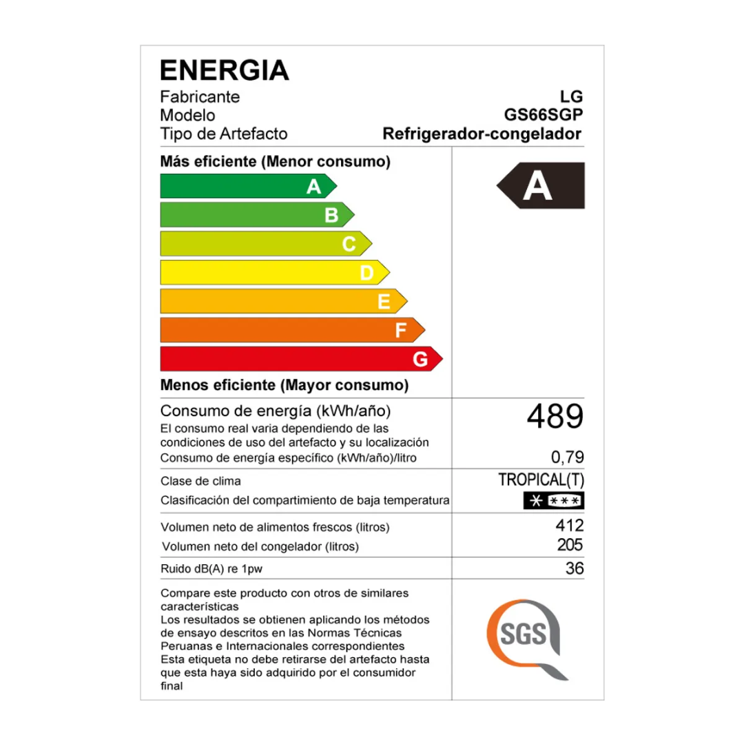 La LG GS66SGP es una refrigeradora Side by Side de gran capacidad (617 L) diseñada para brindar amplio espacio y tecnología avanzada de conservación. Incorpora InstaView™, que permite ver el interior tocando dos veces el panel de vidrio sin abrir la puerta, reduciendo la pérdida de aire frío. También cuenta con DoorCooling+™ y Multi Air Flow, que distribuyen el aire frío de forma rápida y uniforme para mantener los alimentos frescos por más tiempo, además de compresor Smart Inverter que optimiza el consumo de energía y reduce el ruido.