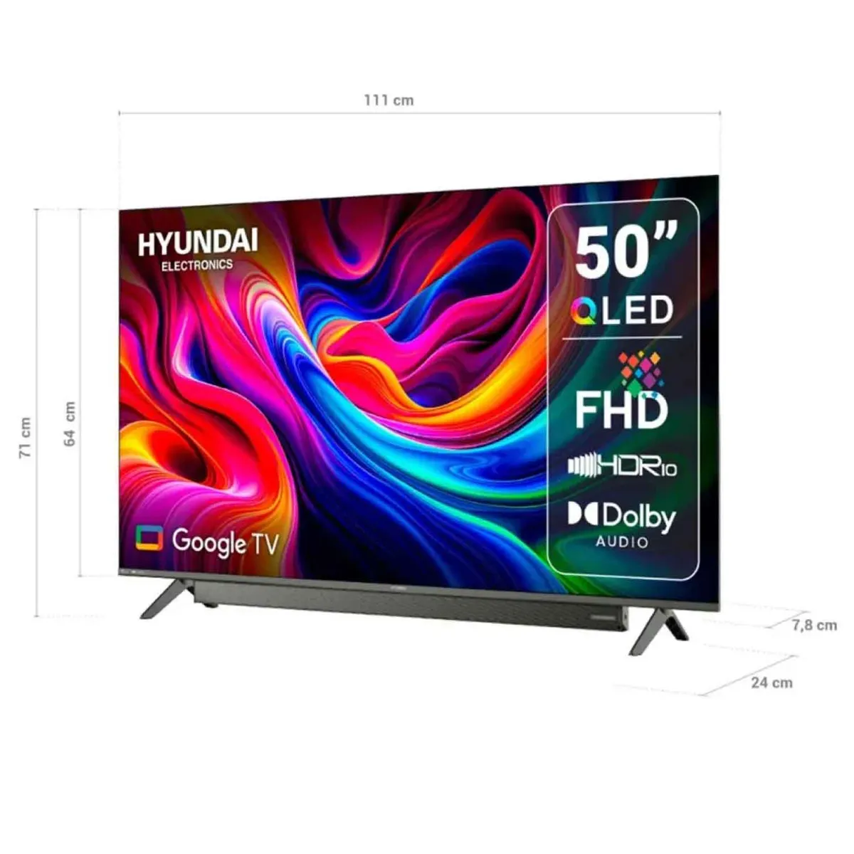 El Hyundai HYLED5029QFG es un televisor de 50 pulgadas con tecnología QLED y resolución 4K Ultra HD que ofrece imágenes más nítidas, colores vibrantes y mejor contraste. Incorpora sistema Google TV para acceder fácilmente a tus aplicaciones favoritas, además de compatibilidad con HDR10 que optimiza cada escena. Su sonido con Dolby Audio y conectividad completa lo convierten en una excelente opción para el entretenimiento en el hogar.