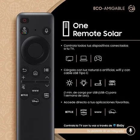 - Control por voz: Compatible con Bixby, Alexa y Google Assistant